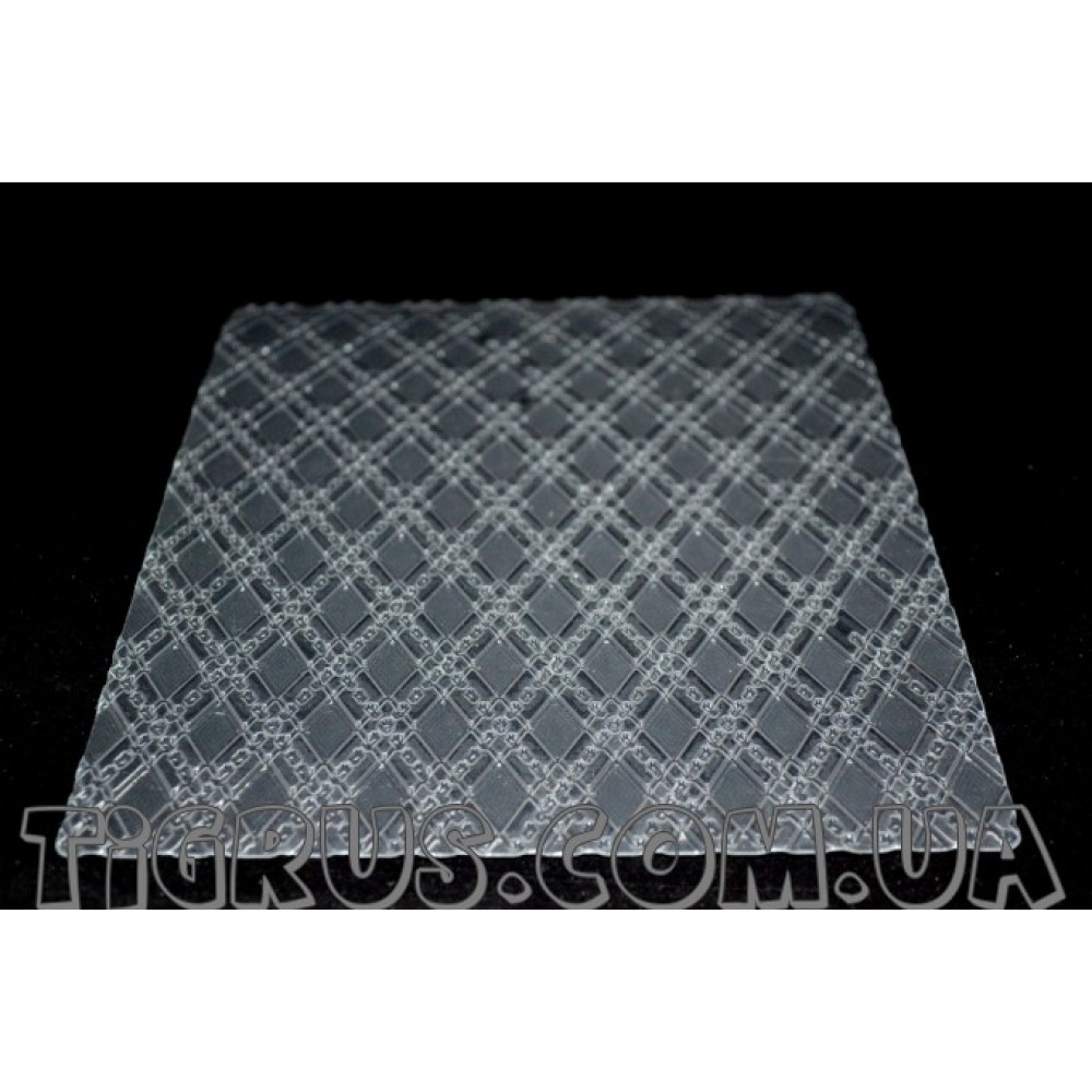 Молд - скролл пластиковый текстурный предназначен для придания определённого рисунка материалу при обтяжке тортов. Благодаря равномерно расположенному рисунку молд можно резать на любые фрагменты, удобные при нанесении текстурного рисунка на мастику.